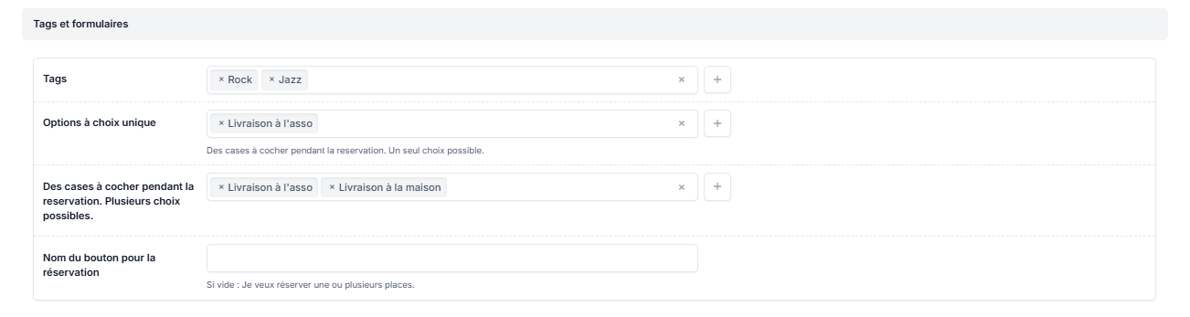 Renseignez le nom du bouton de réservation si vous souhaitez le personnaliser.