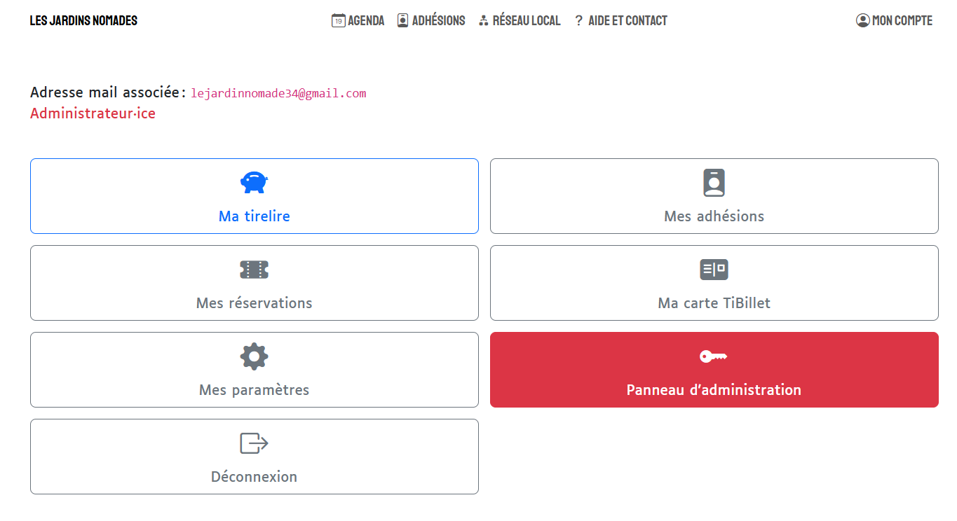 Dans un premier temps, connectez-vous à la page d'administration de votre instance de billetterie en utilisant votre compte.