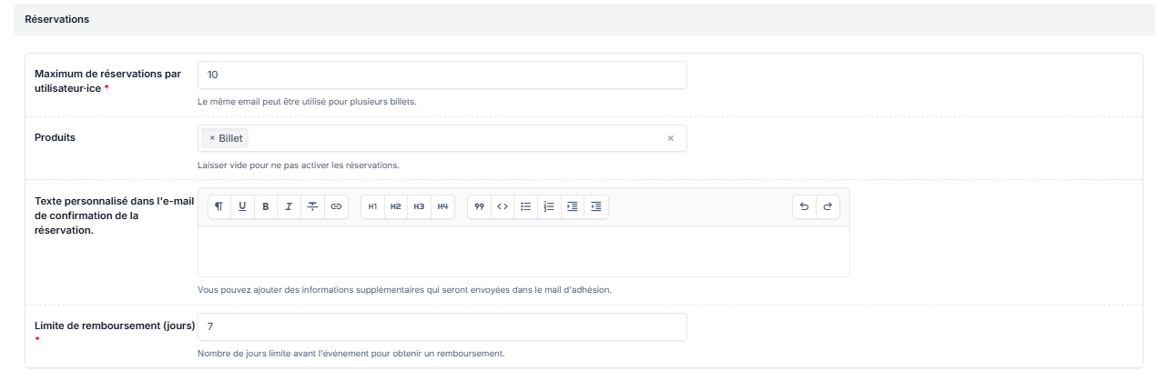 Renseignez le nombre maximum de réservations par utilisateur·ice.