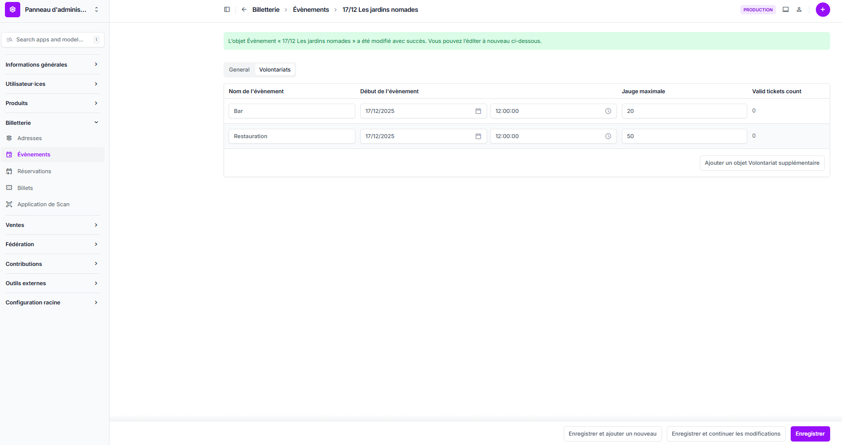 Cliquez sur le bouton "Ajouter un objet volontariat supplémentaire".