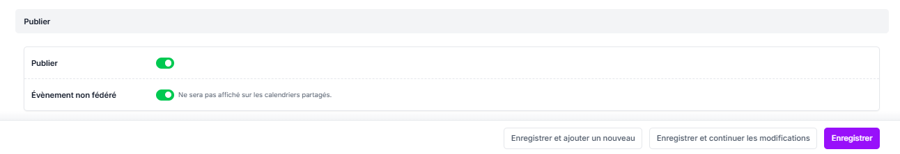 Activez le bouton "Publier" pour que votre événement soit visible en ligne.