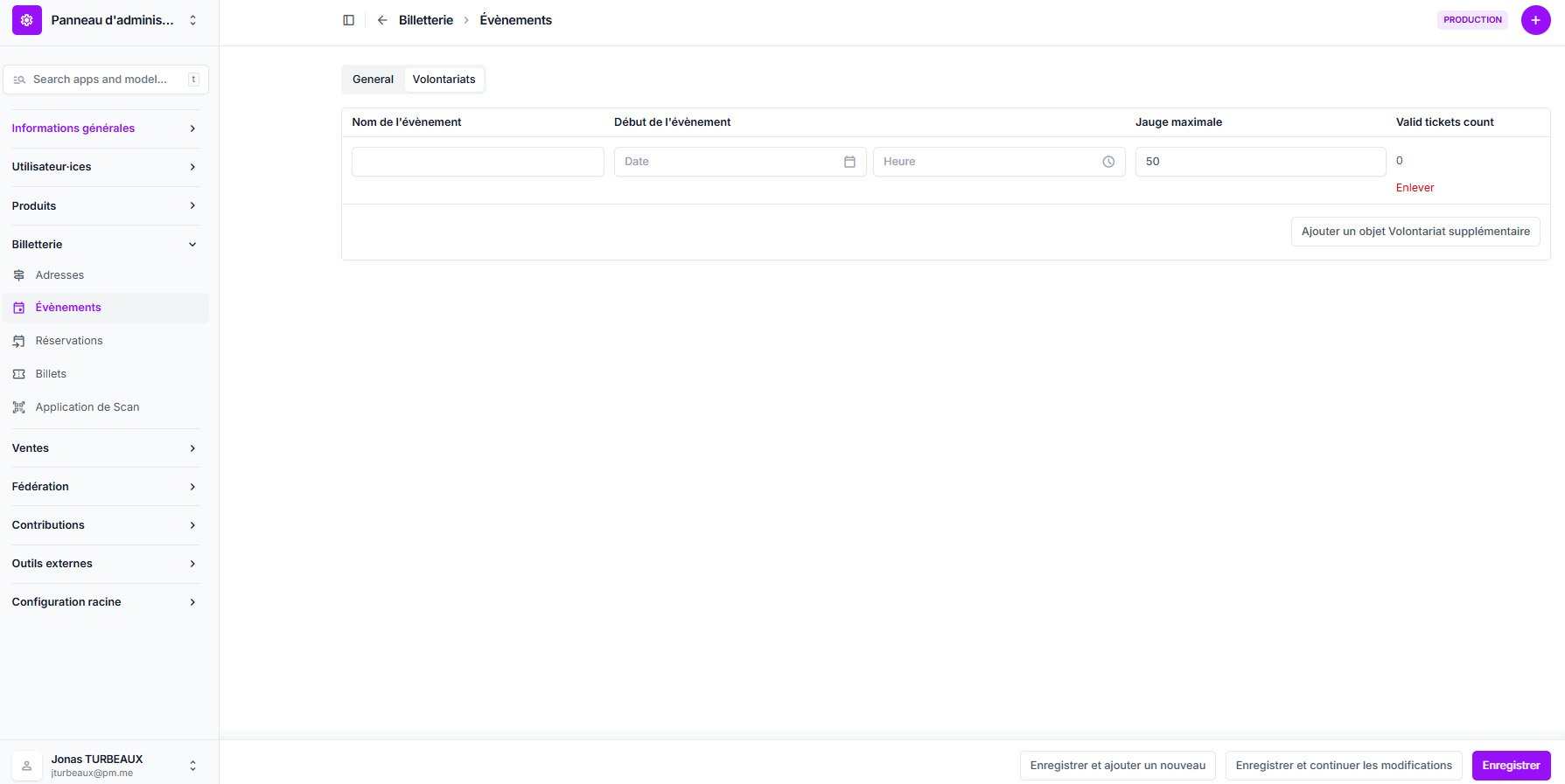 Allez dans l'onglet "Billetterie", puis cliquez sur "Événements" dans le menu à gauche.