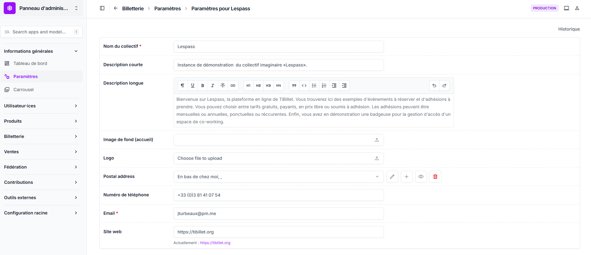 Paramètres de votre Lèspass