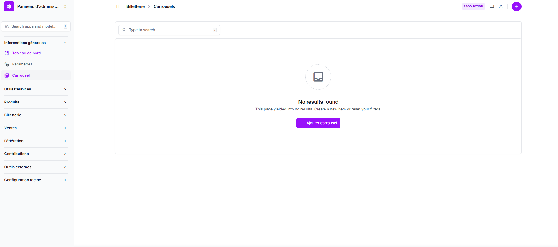 Cliquez sur le bouton "+ Ajouter carrousel".