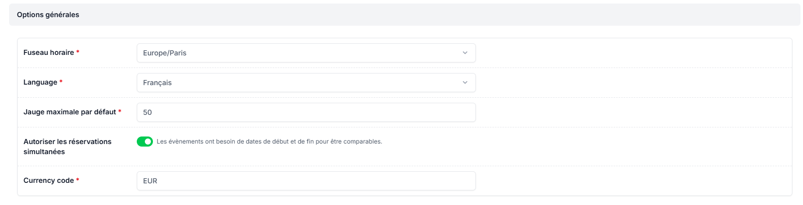 Activez la case "Autoriser les réservations simultanées".
