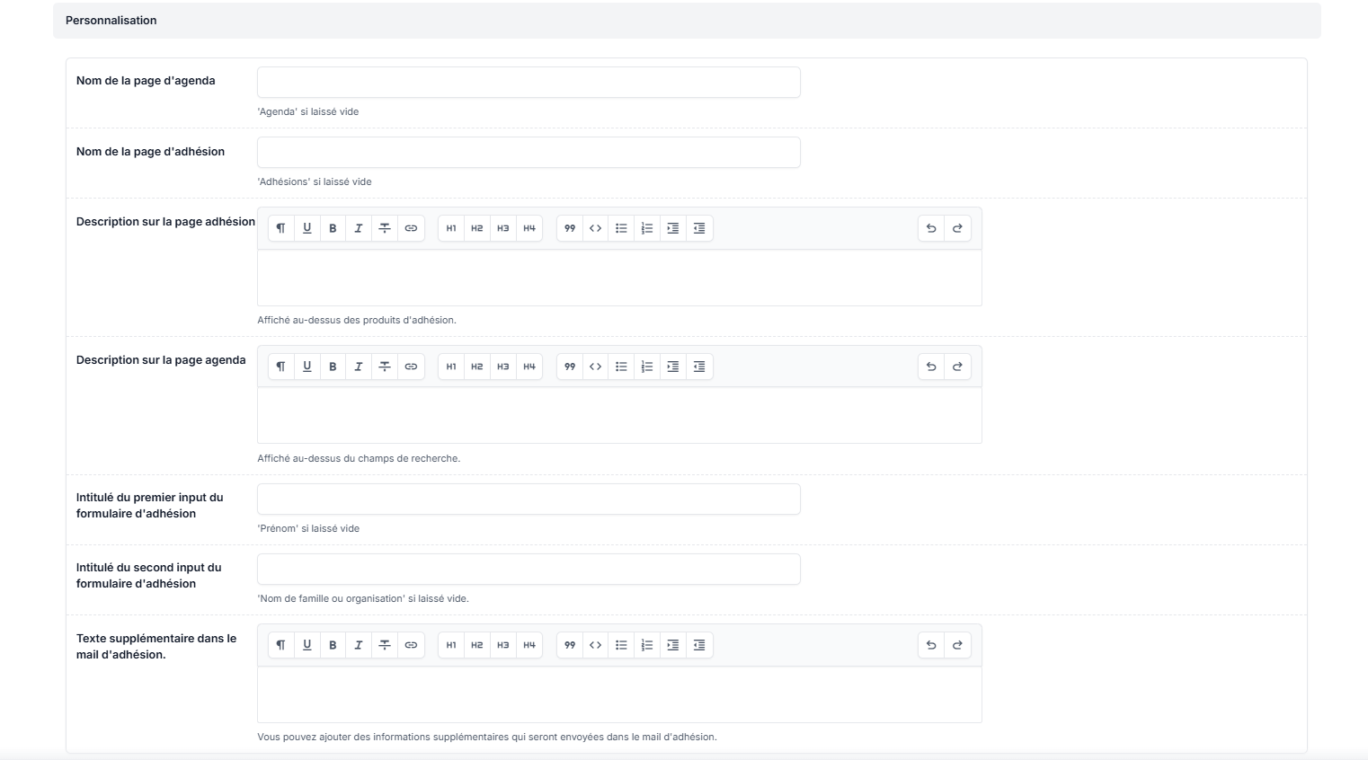 Renseignez une "Description sur la page adhésion".