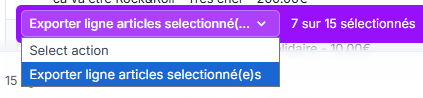 Sélectionnez "Exporter ligne articles sélectionné(e)s".
