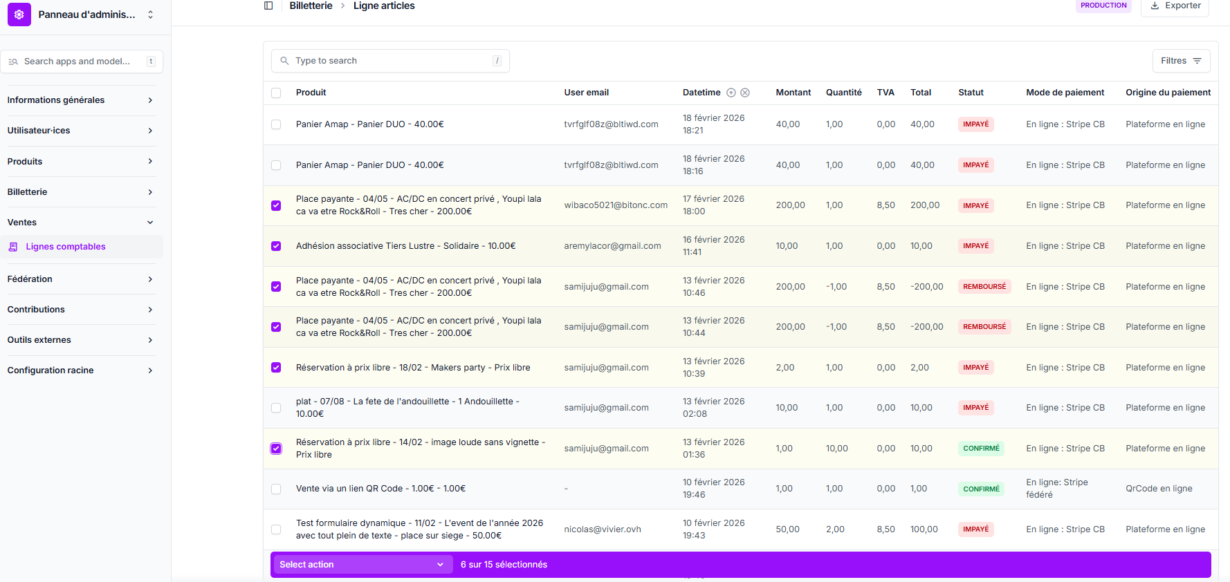 Sélectionnez les différentes lignes que vous souhaité en cochant la case devant celle-ci