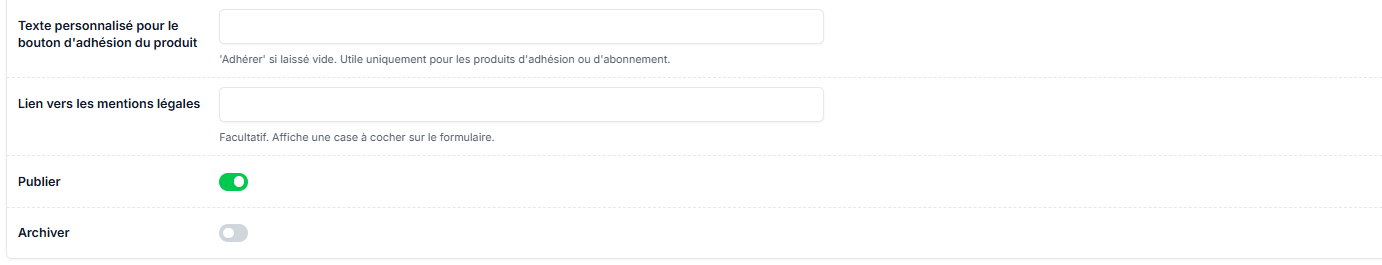 Activez le bouton "Publier" pour afficher la demande de don dans Lespass > Adhérer.