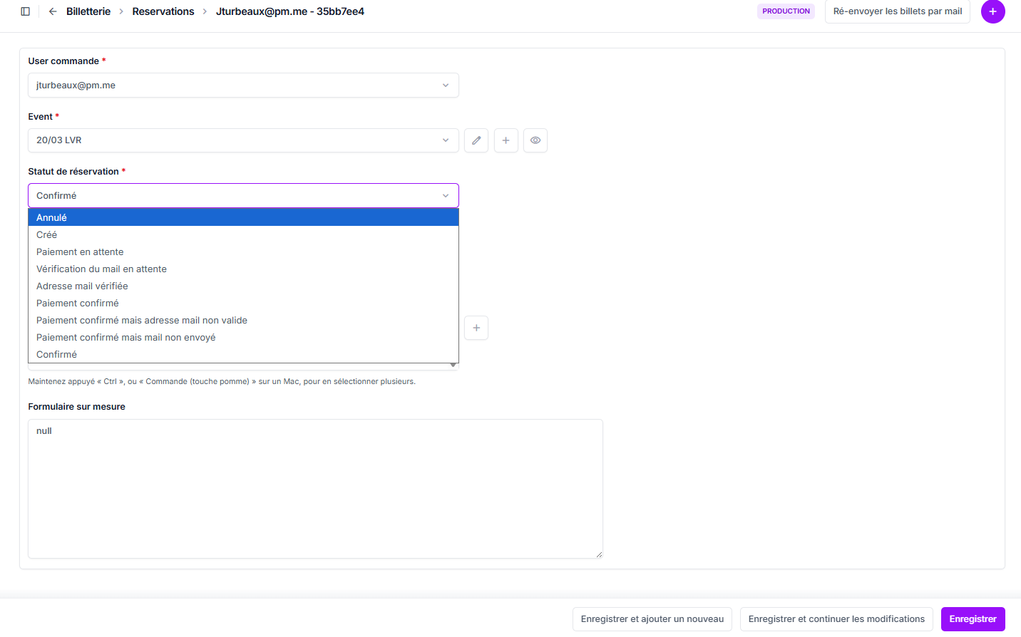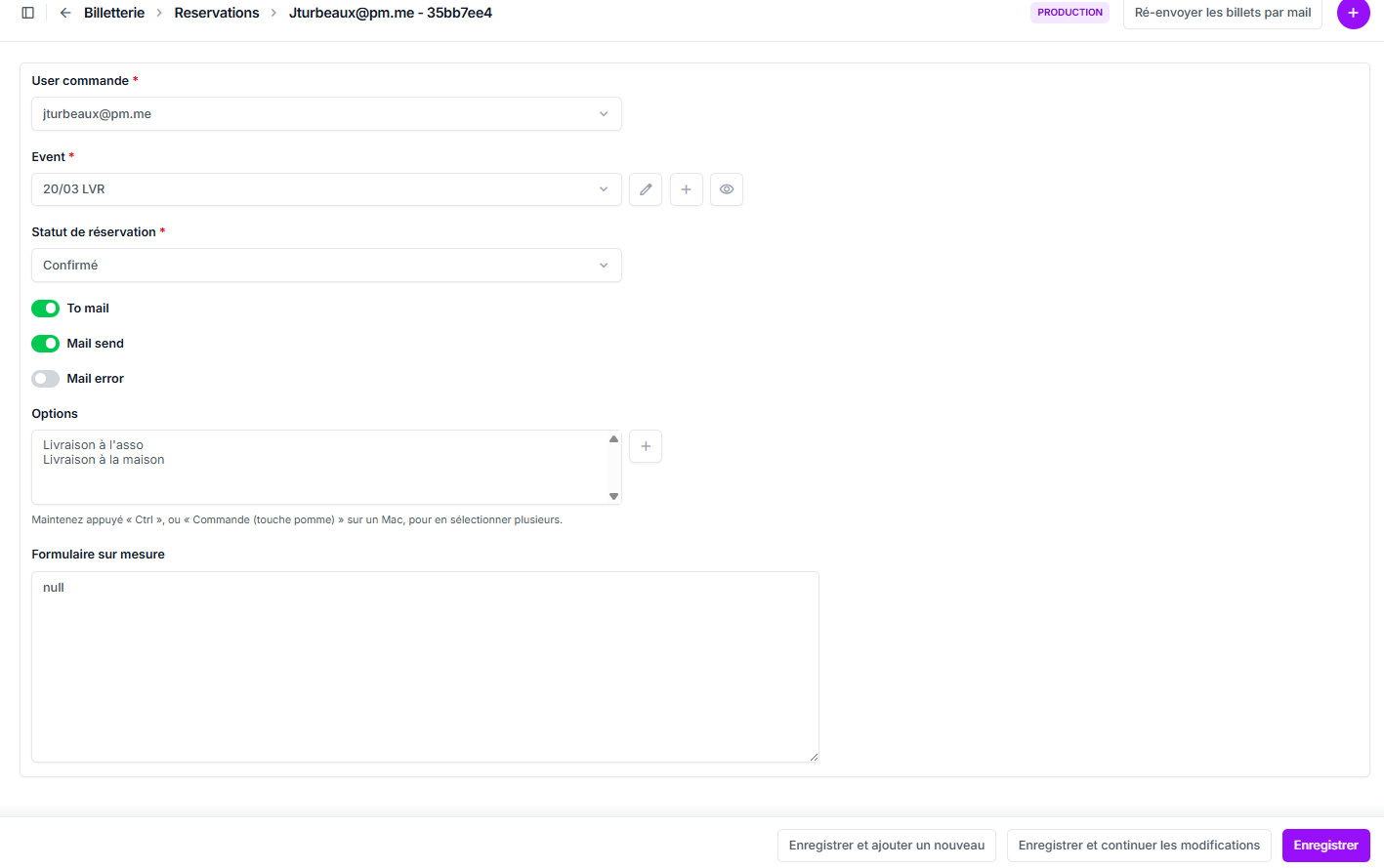 Renvoyer les billets par email si nécessaire. (en haut à droite de l'écran)