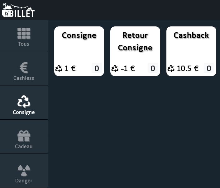 Dans l’application Laboutik, les consignes apparaissent dans une catégorie dédiée :
