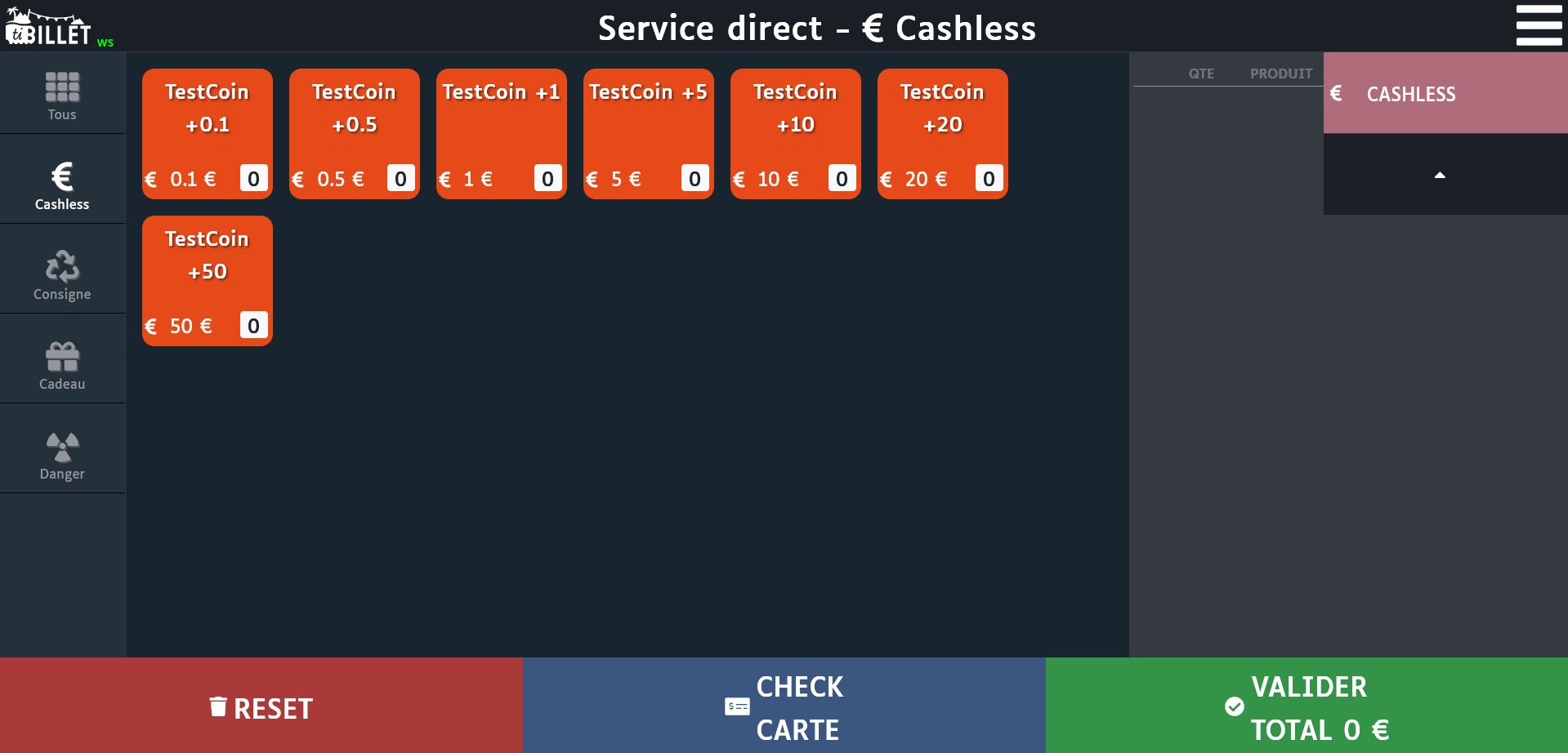 À ce stade, vous pouvez uniquement accéder aux fonctions de recharge, consignes et gestion des cartes. Les ventes de produits viendront après la création de vos propres points de vente.
