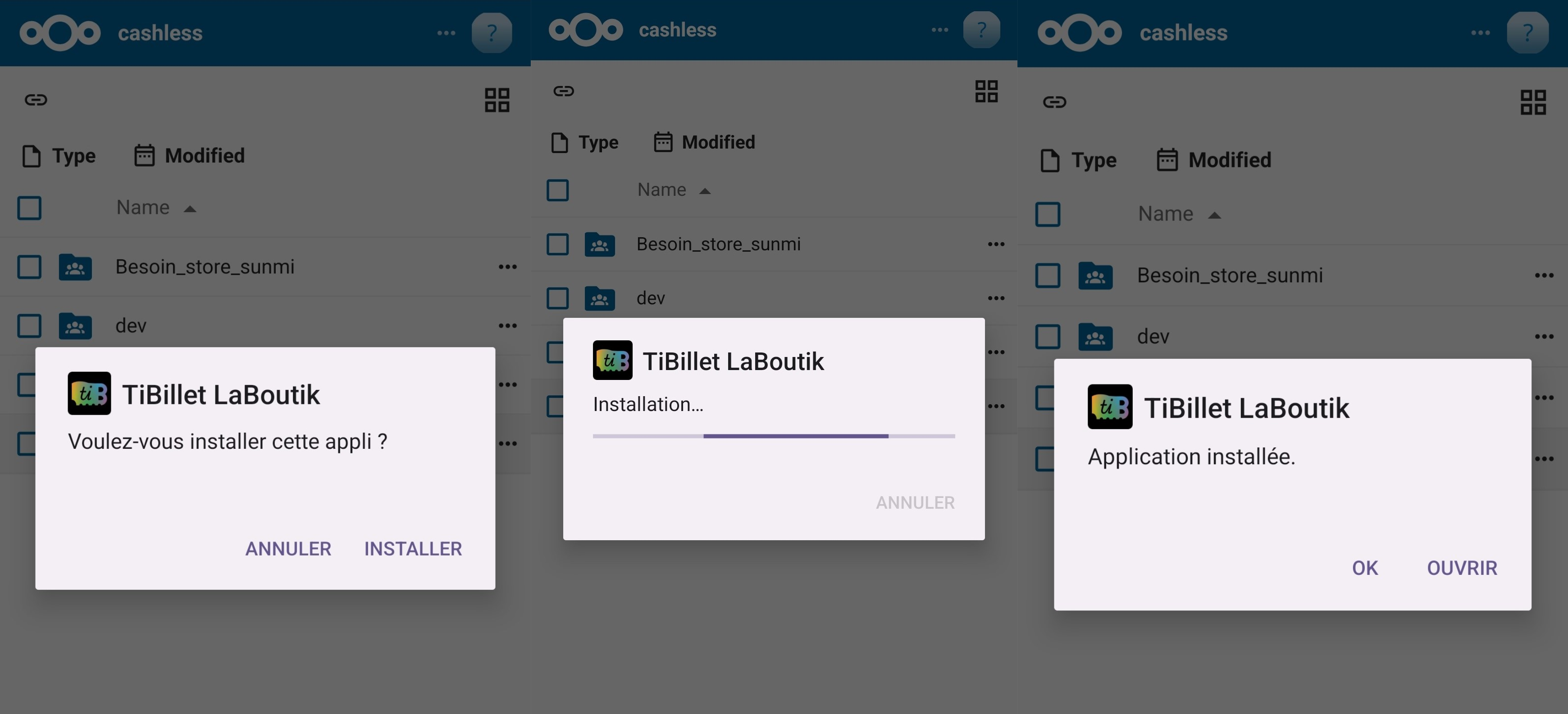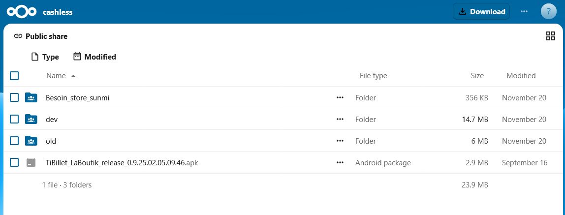 Cette page explique comment installer l’application TiBillet LaBoutik sur votre appareil de caisse. L’installation est différente selon que vous utilisez un téléphone Android ou un terminal Sunmi.