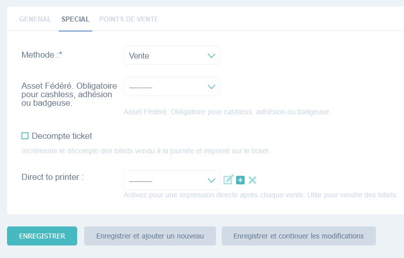 Pour certains articles (billets, commandes cuisine, etc.), il est possible d’activer l’impression automatique.
