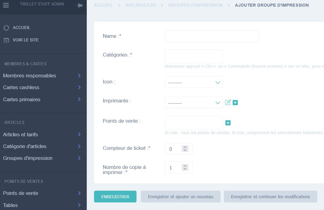 Avant de pouvoir imprimer des tickets, il faut déclarer l’imprimante dans l’interface d’administration Laboutik.