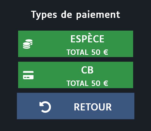 Appuyez sur le bouton vert pour valider le mode de paiement.