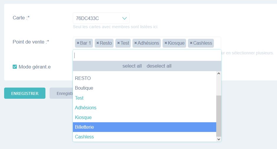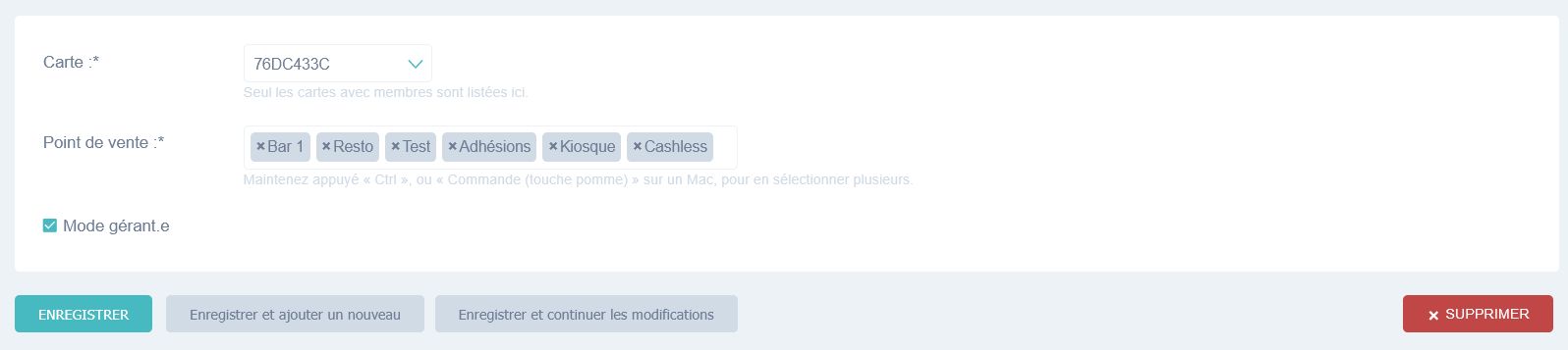 Vous pouvez à tout moment modifier les droits d’accès d’une carte primaire : ajouter ou retirer des points de vente, ou supprimer le statut de carte primaire.