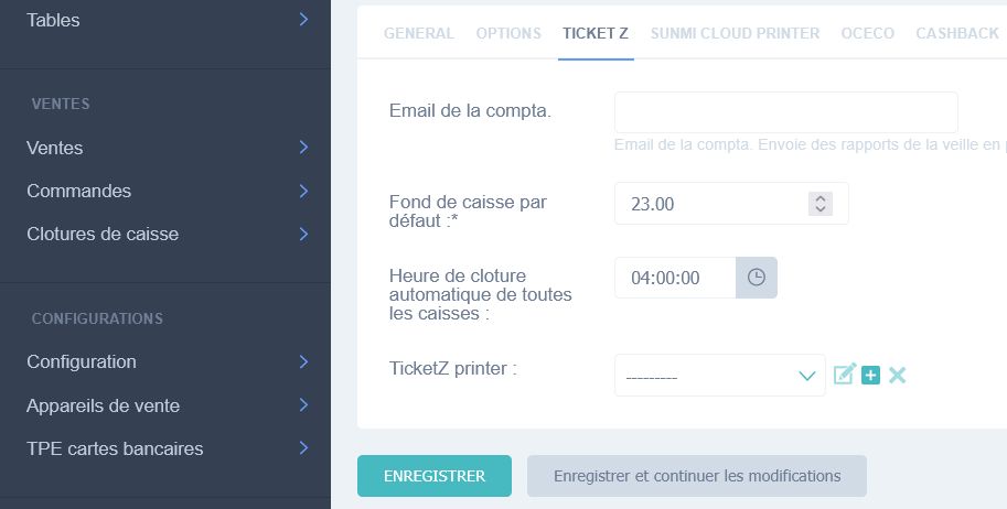 Saisissez la valeur souhaitée dans Fond de caisse par défaut.