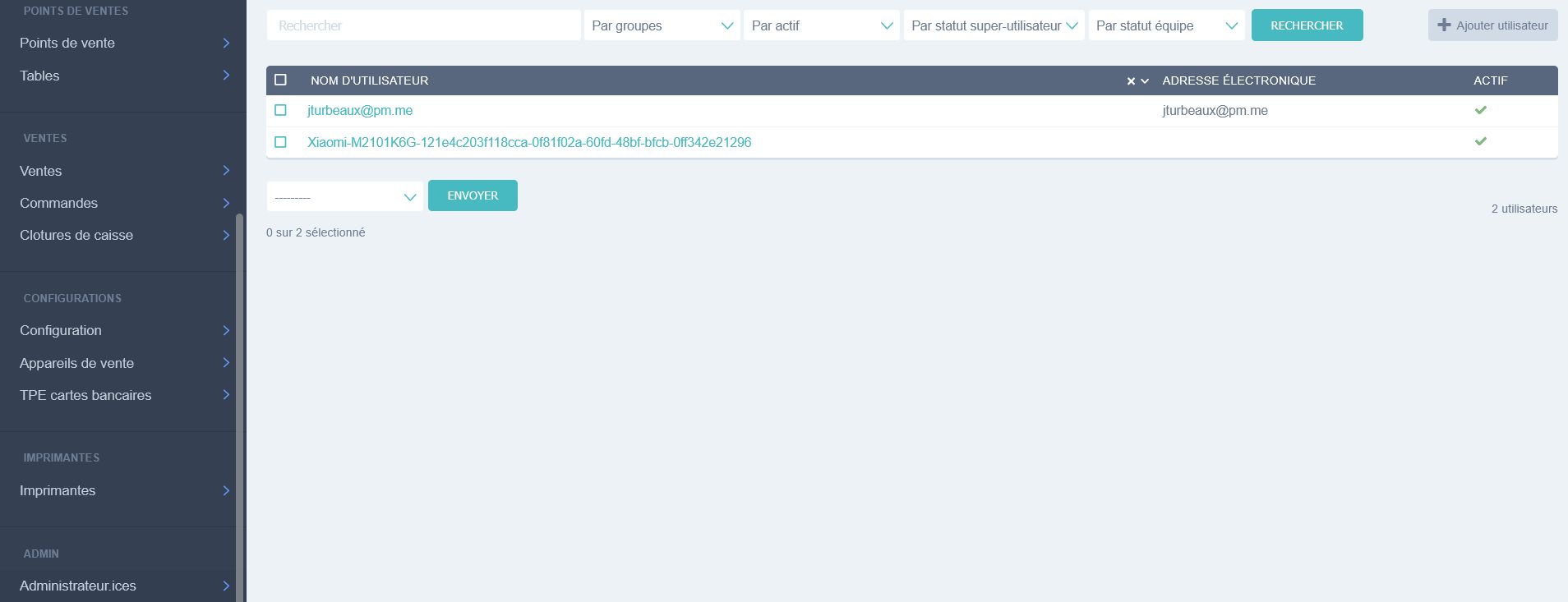 Le menu Administrateur.ices permet d’ajouter des personnes autorisées à accéder à l’interface d’administration.