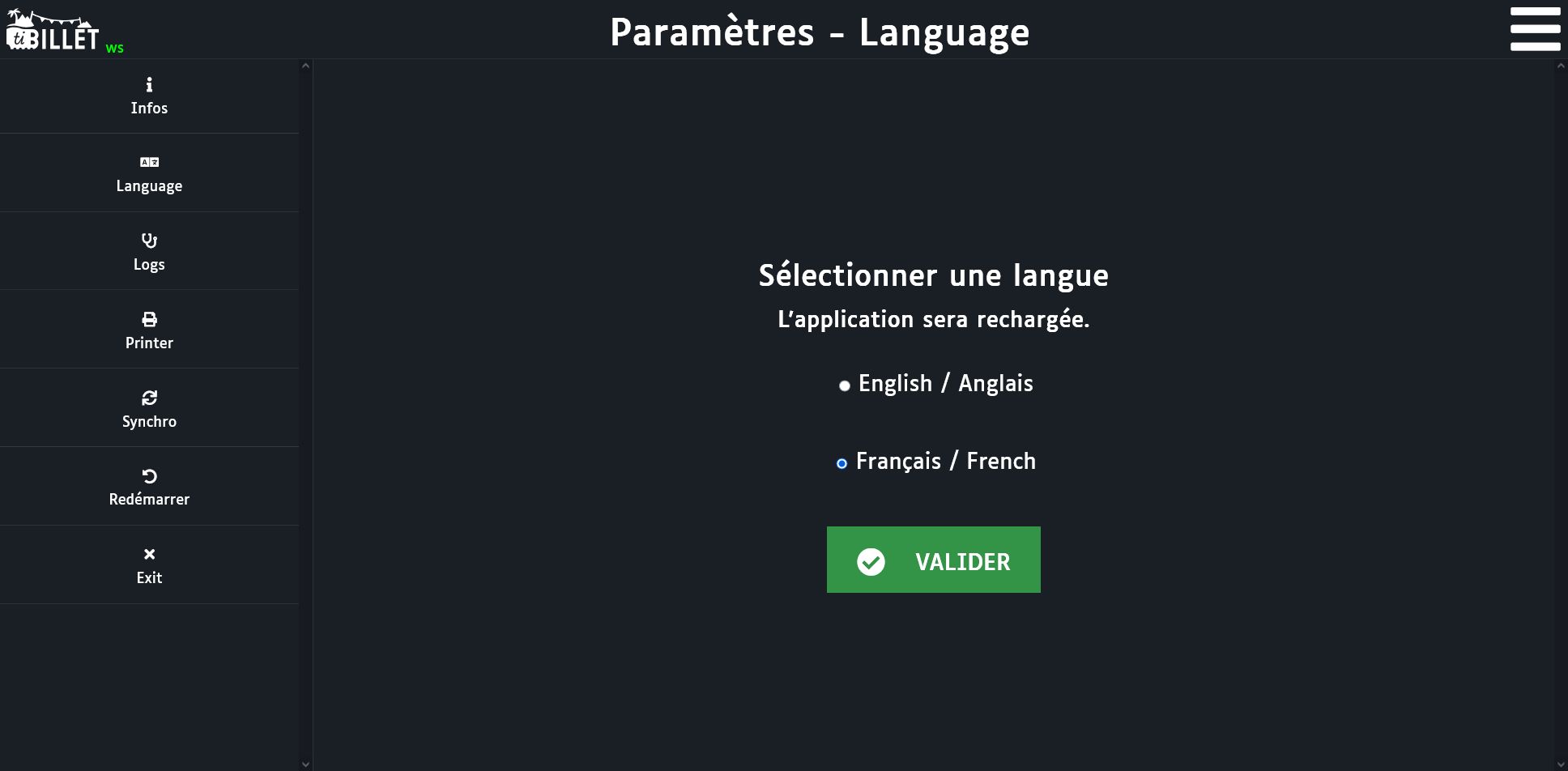 L’application redémarre automatiquement avec la nouvelle langue.