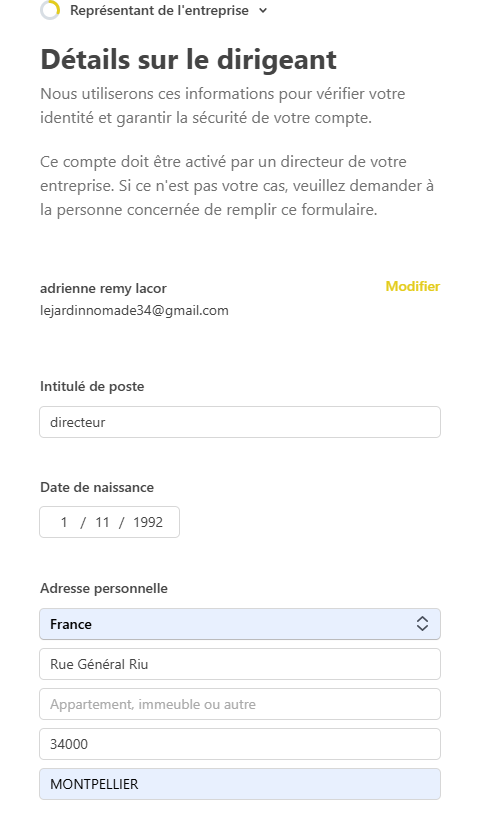 Stripe affiche ici une fiche d’identité du représentant légal déclaré.