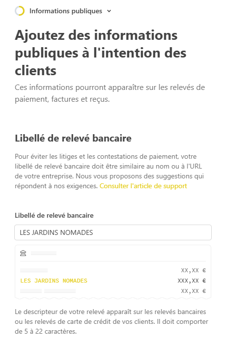 Nom affiché sur le relevé bancaire du client