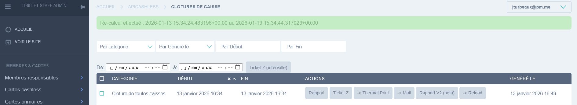 Le nouveau rapport généré apparaîtra dans le menu Clôture de caisse de votre interface d'administration.