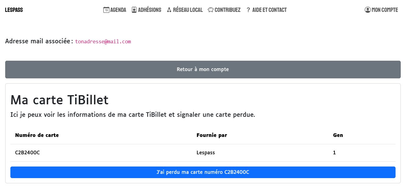 Depuis ton espace Mon compte, clique sur Ma carte TiBillet.