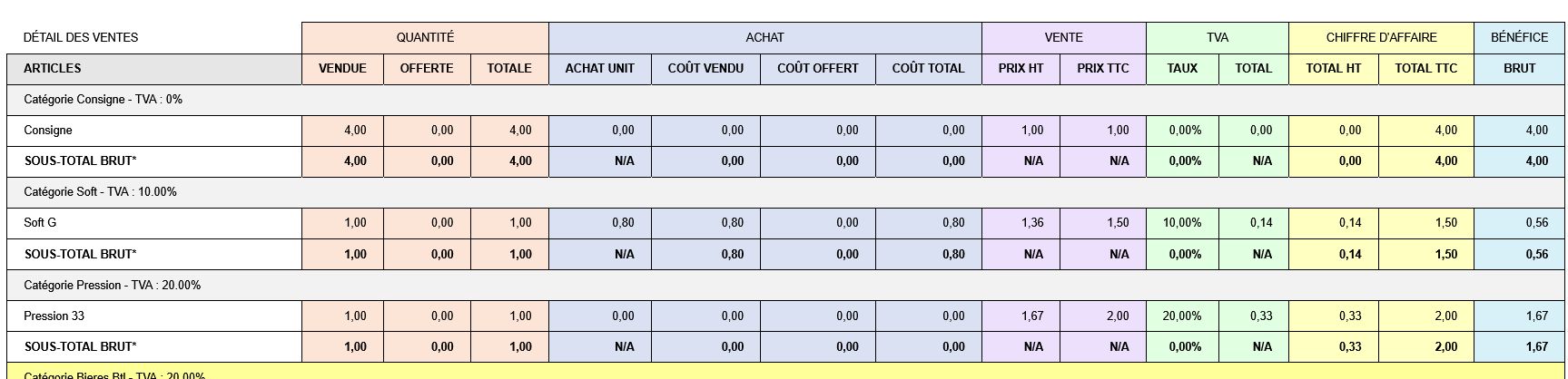 Cette section est essentielle pour la comptabilité et les déclarations fiscales. Elle permet aussi de vérifier que chaque catégorie d’articles utilise le bon taux de TVA.