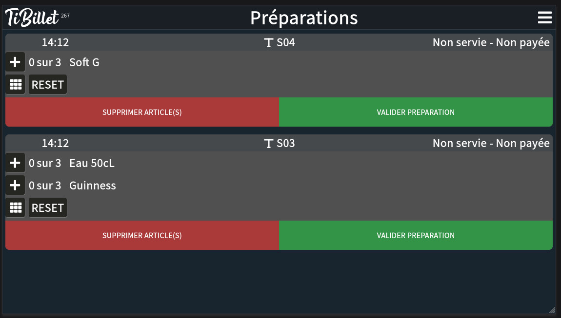 Prise de commande pour buvette et salle de restauration. Impréssion de ticket en cuisine et au bar. Prise de commande par le client.